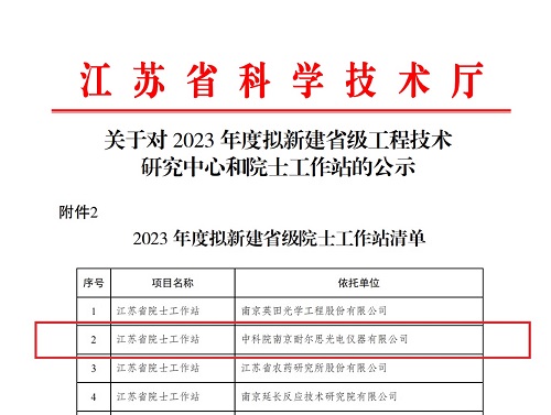 近日,江蘇省科技廳公示了2023年度擬新建的省級院士工作站名單,全省共18家,我公司的全資子公司“中科院南京耐爾思光電儀器有限公司”申報(bào)的崔向群院士工作站成功入選。