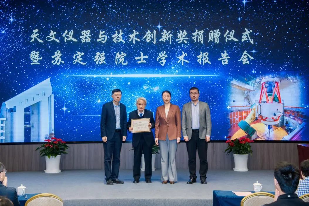 蘇定強(qiáng)院士將江蘇省基礎(chǔ)研究重大貢獻(xiàn)獎(jiǎng)獎(jiǎng)金100萬元和單位匹配的獎(jiǎng)金50萬元,共150萬元全額捐贈(zèng),用于設(shè)立“天文儀器與技術(shù)創(chuàng)新獎(jiǎng)”,旨在激勵(lì)在天文技術(shù)領(lǐng)域取得創(chuàng)新性成果的科技工作者。